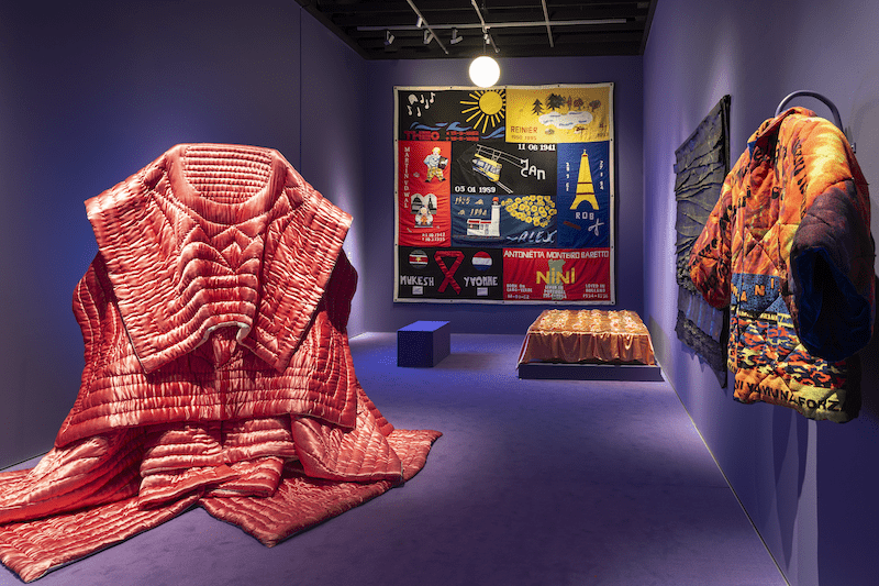 Kleurrijke ruimtes vol wol, stoffen wandkleden, mode-objecten, spiegels en naaisels vormen een uiting van identiteit, verzet, pijn en liefde. Zoals het indringende tweeluik For the Angel of History van Célio Braga (1963) met een roze driehoek, wat homoseksuele mannen en transvrouwen moesten dragen in concentratiekampen. Met daarnaast een kruis, symbool voor trots en verzet tijdens de aids-epidemie. Zodra je de verhalen kent, merk je hoe de textiel nog meer betekenis krijgt.