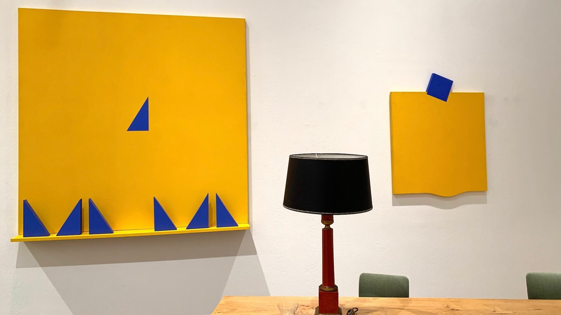 In het licht dat de gele geometrische figuren werpen – vrijgelaten om in speelsheid te dwalen – bevestigt de geometrie opnieuw haar vloeiende, bepalende kracht. Ze herkadert, of zelfs her-eigent alledaagse objecten in termen van objecten van de geometrie: lijnen, vormen en hun ritmes. En wat te denken van de functionaliteit, de instrumentele aard van meubilair?