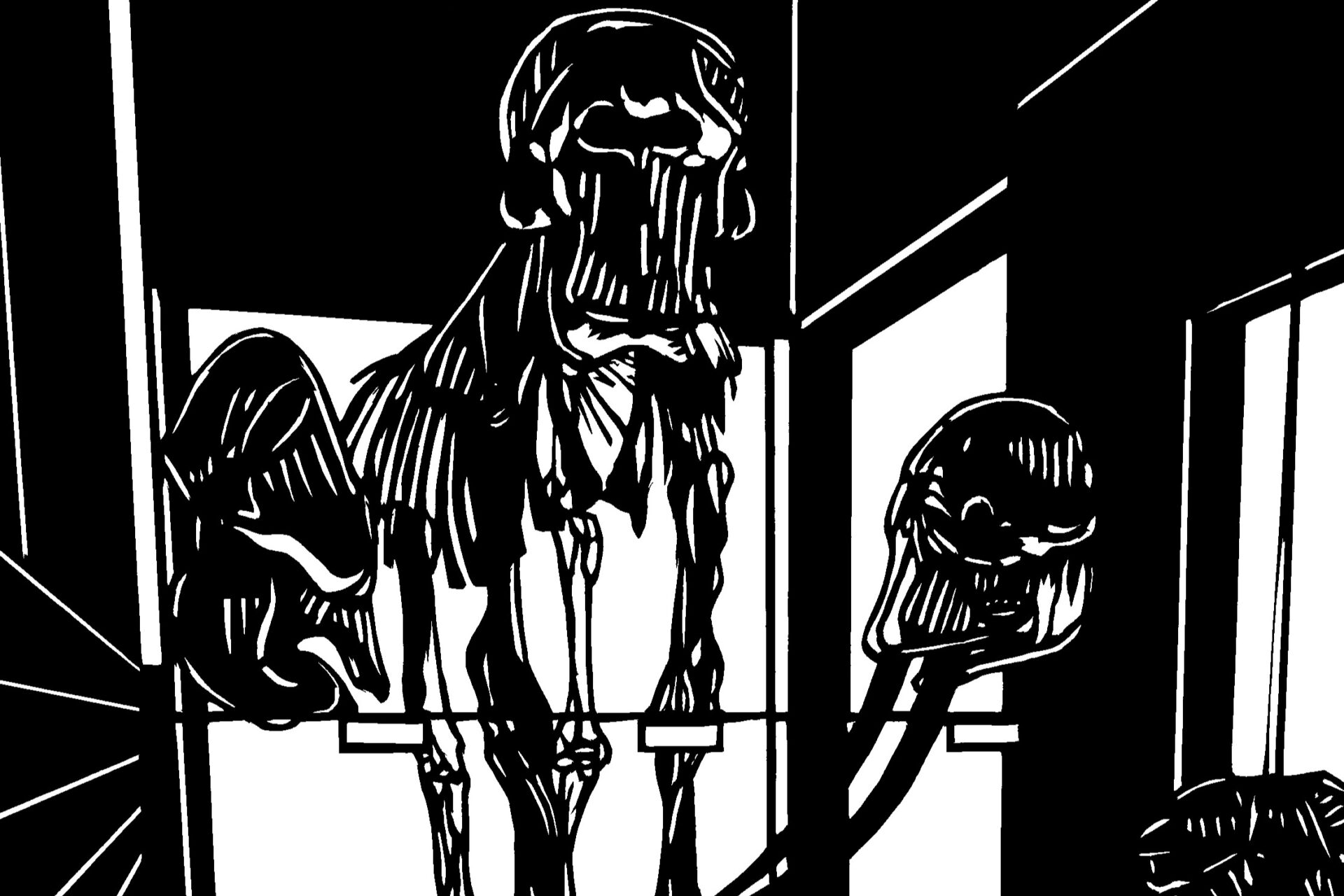 Van 24 oktober tot en met 19 april 2026 kan je bovenop de museumcollectie een tentoonstelling bewonderen van de Nederlandse kunstenaar Ties Poeth. Voor een papiersnijkunstproject bezocht hij natuurhistorische musea overal in Europa en spitste zich toe op de skeletten. Een betere plaats om te exposeren kan je niet bedenken: kunstwerken van skeletten tussen skeletten gepresenteerd als kunstwerken.