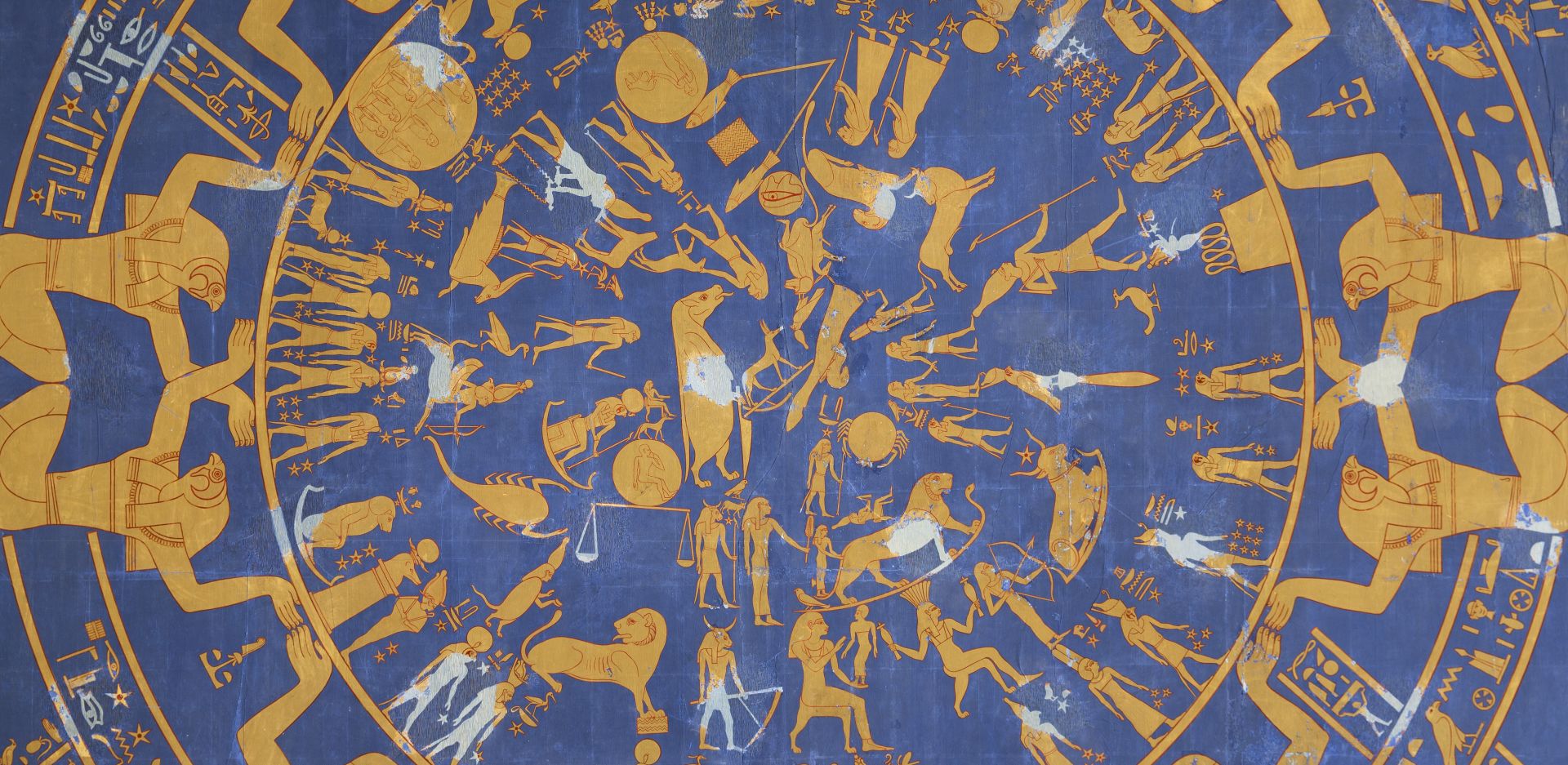 Beeld: Picturesque representation of the round celestial image from Dendera on a ceiling in the Neues Museum (Detail) © Staatliche Museen zu Berlin, Ägyptisches Museum und Papyrussammlung, Foto: Sandra Steiß