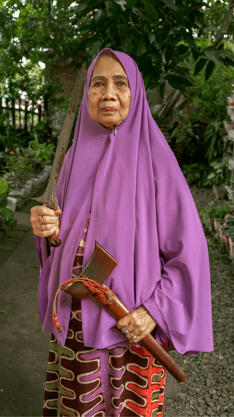 Beeld: Andi Simatana Makkasau met de kris van haar vader Andi Makkasau.