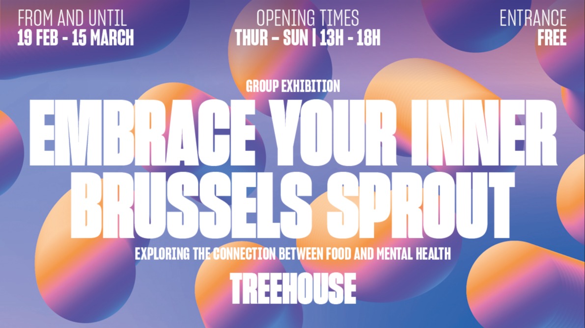 In de tentoonstelling EMBRACE YOUR INNER BRUSSELS SPROUT tonen tien kunstenaars bij treehouse ndsm de kracht van eten op mentaal welzijn. Eten als collectieve verbinder en viering van je identiteit door middel van familierecepten, rituelen en als effectief middel tegen eenzaam-heid maar ook het tegenovergestelde geldt: wanneer iemand niet kan deelnemen aan de sociale rituelen rondom eten. De expositie is gepland van 19 februari tot en met 15 maart 2026.
