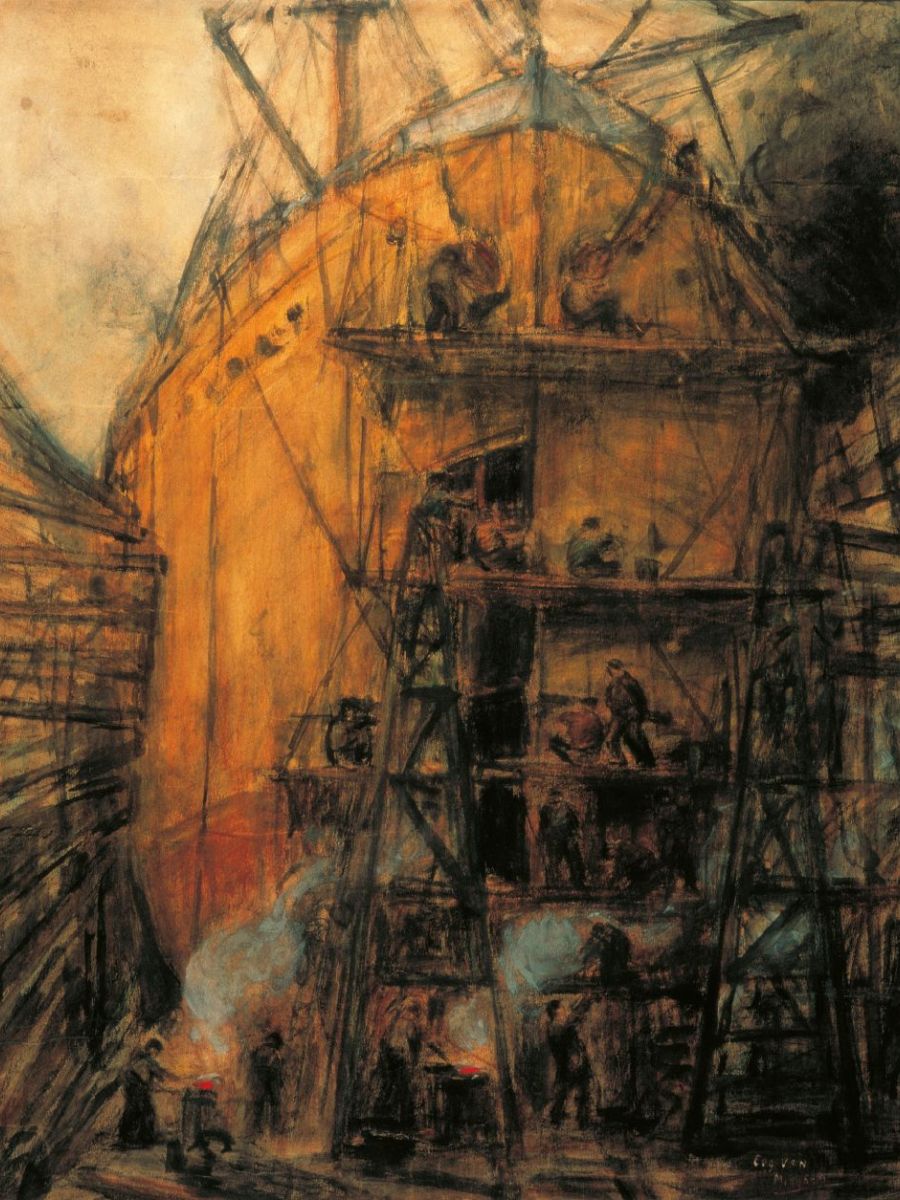 Beeld: In het droogdok – Eugeen Van Mieghem, ca 1912, privécollectie