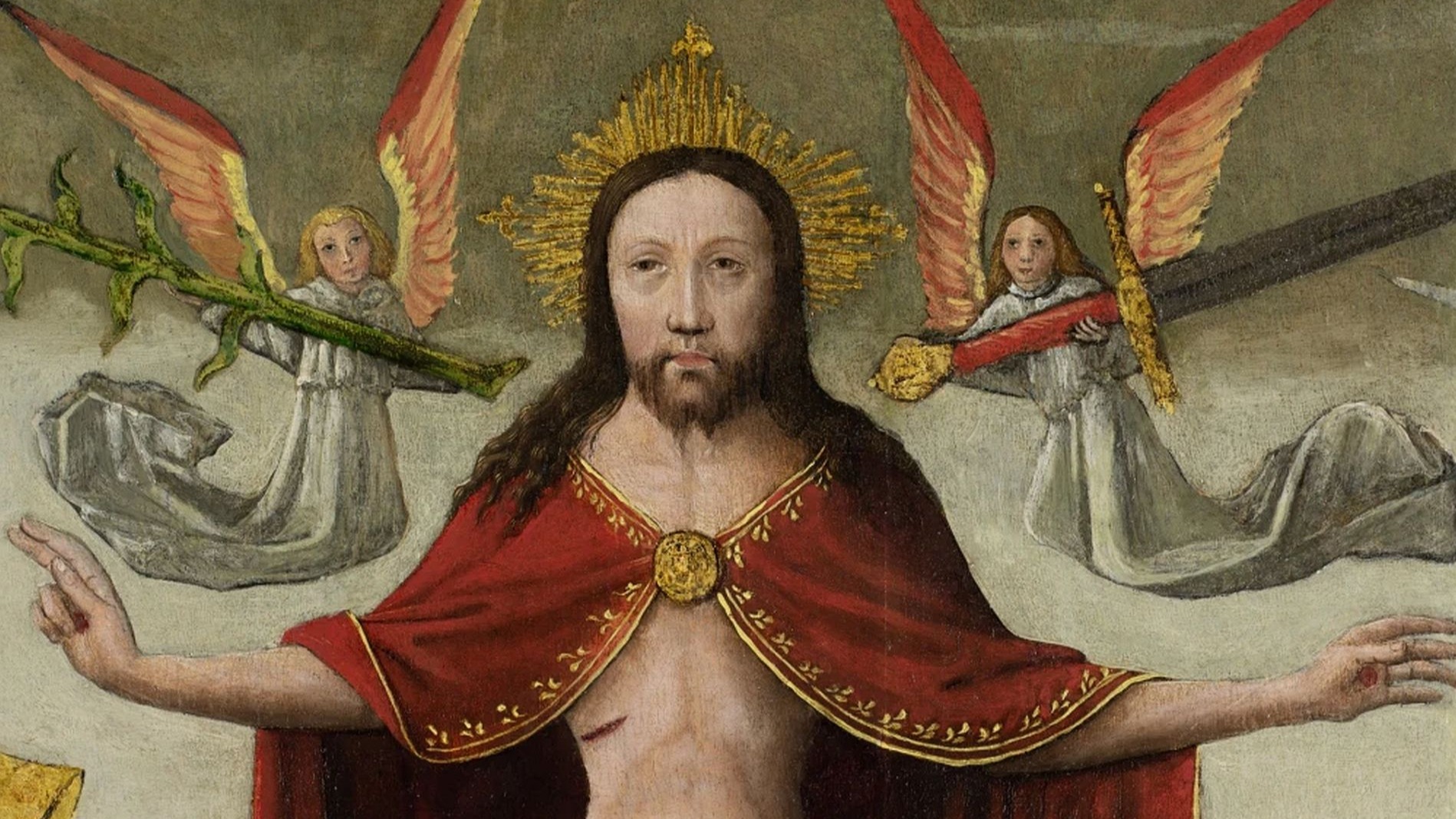 In de late middeleeuwen kregen rechtszalen vaak een schildering die rechters eraan herinnerde: spreek eerlijk recht. Het indrukwekkende Gerechtigheidspaneel (ca. 1475–1477), gemaakt door Jan van Brussel, hing ooit in de raadkamer van Maastricht. Bovenaan zie je het Laatste Oordeel: Christus als rechter op een gouden regenboog, omringd door engelen die de doden wekken. Daaronder een rechtszitting: een rijke en een arme man staan tegenover elkaar, terwijl een duivel de rechters probeert om te kopen. De aartsengel Michaël wijst streng naar de hel – een duidelijke waarschuwing voor wie zich laat verleiden.