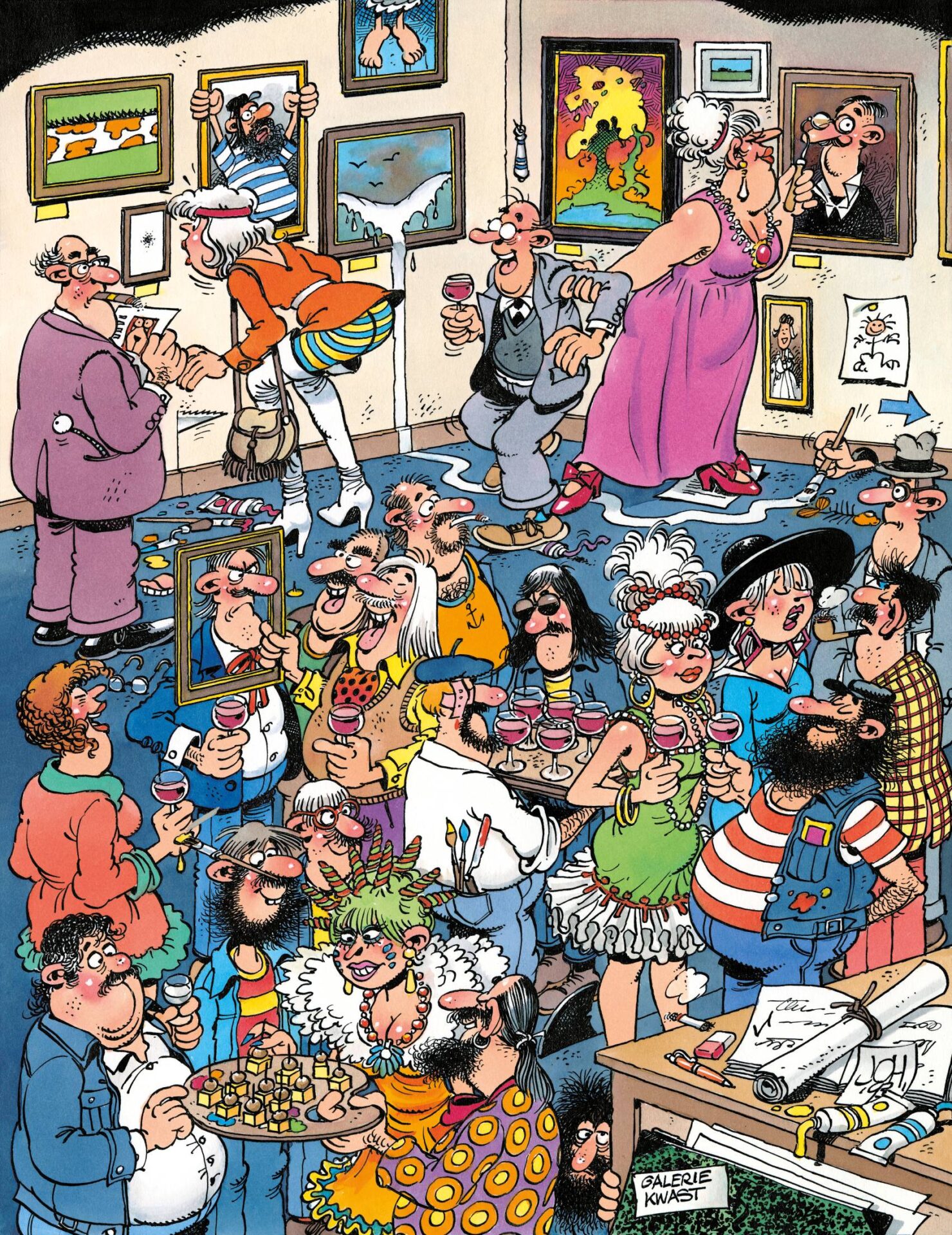 Aan de hand van veel origineel werk uit Van Haasterens persoonlijk archief wordt zijn ontwikkeling inzichtelijk gemaakt: van zijn inspiratiebronnen en zijn werk bij de Marten Toonder Studio’s tot strips voor bladen als Pep, Sjors en Jippo, en zijn rol als medeoprichter van het satirische tijdschrift De Vrije Balloen. Ook zijn herkenbare werk als reclame-illustrator krijgt uitgebreid aandacht.