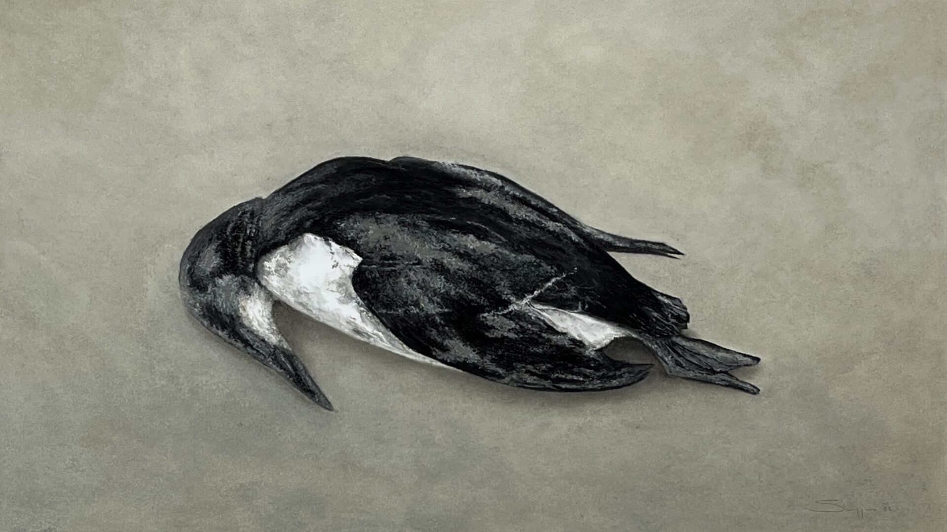 Beeld: Zeekoet (2025) — oliepastel op papier, door Sue Wiggers