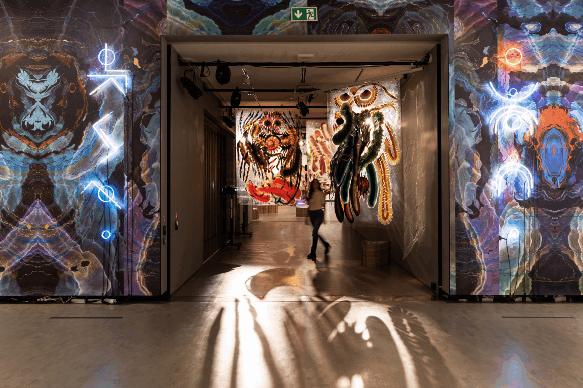 Beeld: Exhibition view „Kerstin Brätsch – MƎTAATEM“, MUNCH Oslo 2025 (DAS INSTITUT (Kerstin Brätsch & Adele Röder) & Sergei Tcherepnin, North Tomb, since 2016, Courtesy the artists & Gladstone Gallery) Photo: Ove Kvavik