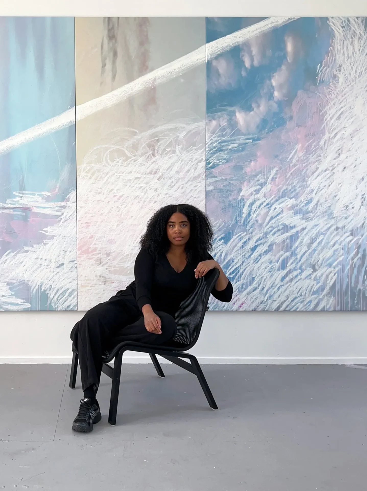 In I Breathe an Endless Universe in Me (2026) verandert kunstenaar Mandy Franca (Rotterdam, 1989) de zolder van Stedelijk Museum Schiedam in een installatie van nieuwe en bestaande schilderijen, foto’s, geluiden, video’s, collages en ruimtelijke ingrepen. ‘Lucht’ vormt de rode draad in de tentoonstelling en wordt op de zolder bijna tastbaar: ze vult de ruimte tussen lichamen, draagt sporen van plekken en omstandigheden en is tegelijk het materiaal dat ons scheidt én samenbrengt.