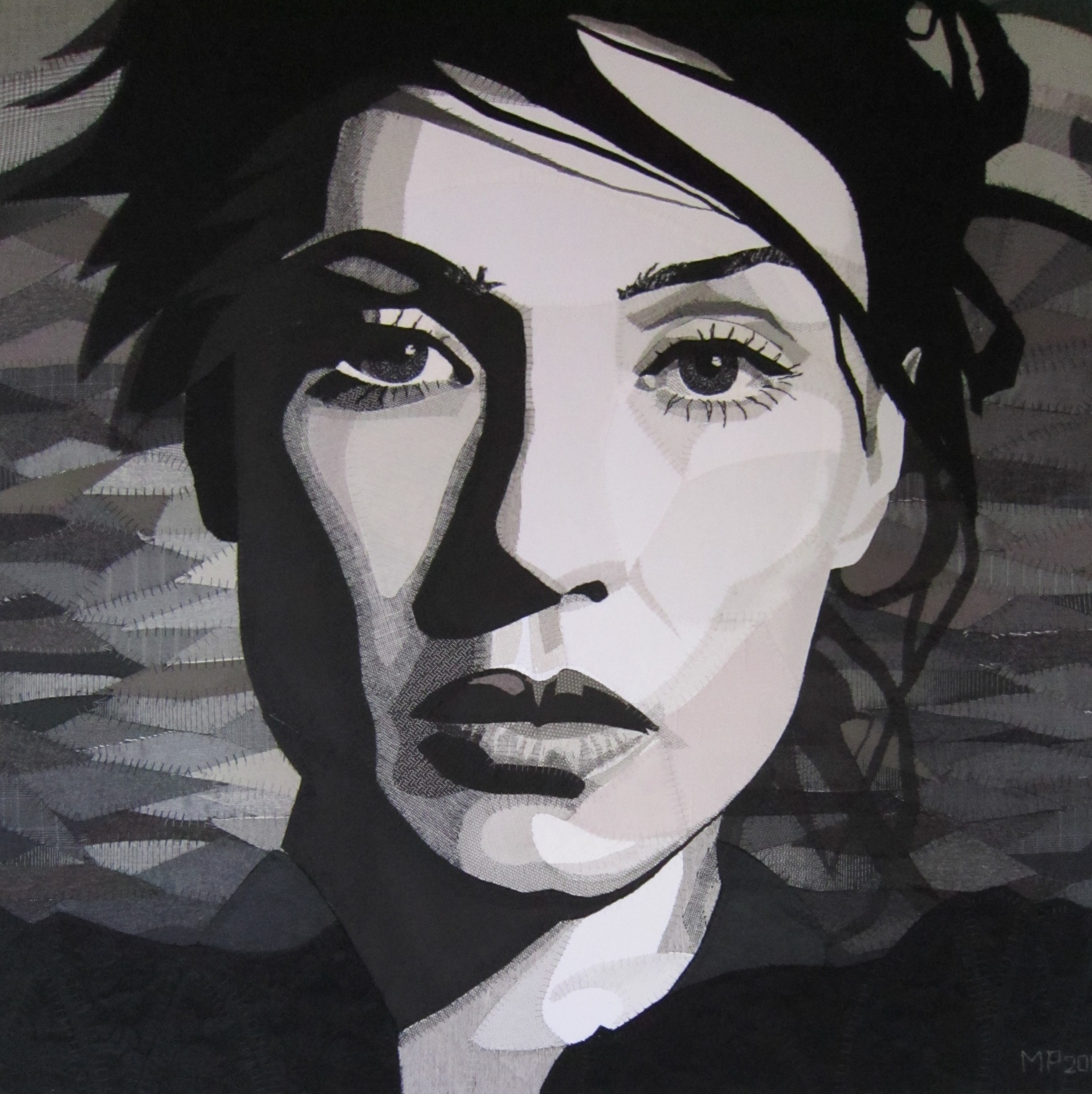 Mary Poppelier schildert met textiel. Stukjes stof zet ze vast met naald en draad, spelend met transparantie, lichtval en kleur. Dat kan helder en grafisch uitpakken zoals in haar portret van Carice van Houten, of dromerig en sferisch zoals bij haar bloemportretten. Ze gebruikt voornamelijk hergebruikt textiel als afsnijdsels van de kleermaker, oude stofstalen of afgedankte kleding. Van sinaasappelnetjes tot couture stoffen, en alles wat daartussen zit.