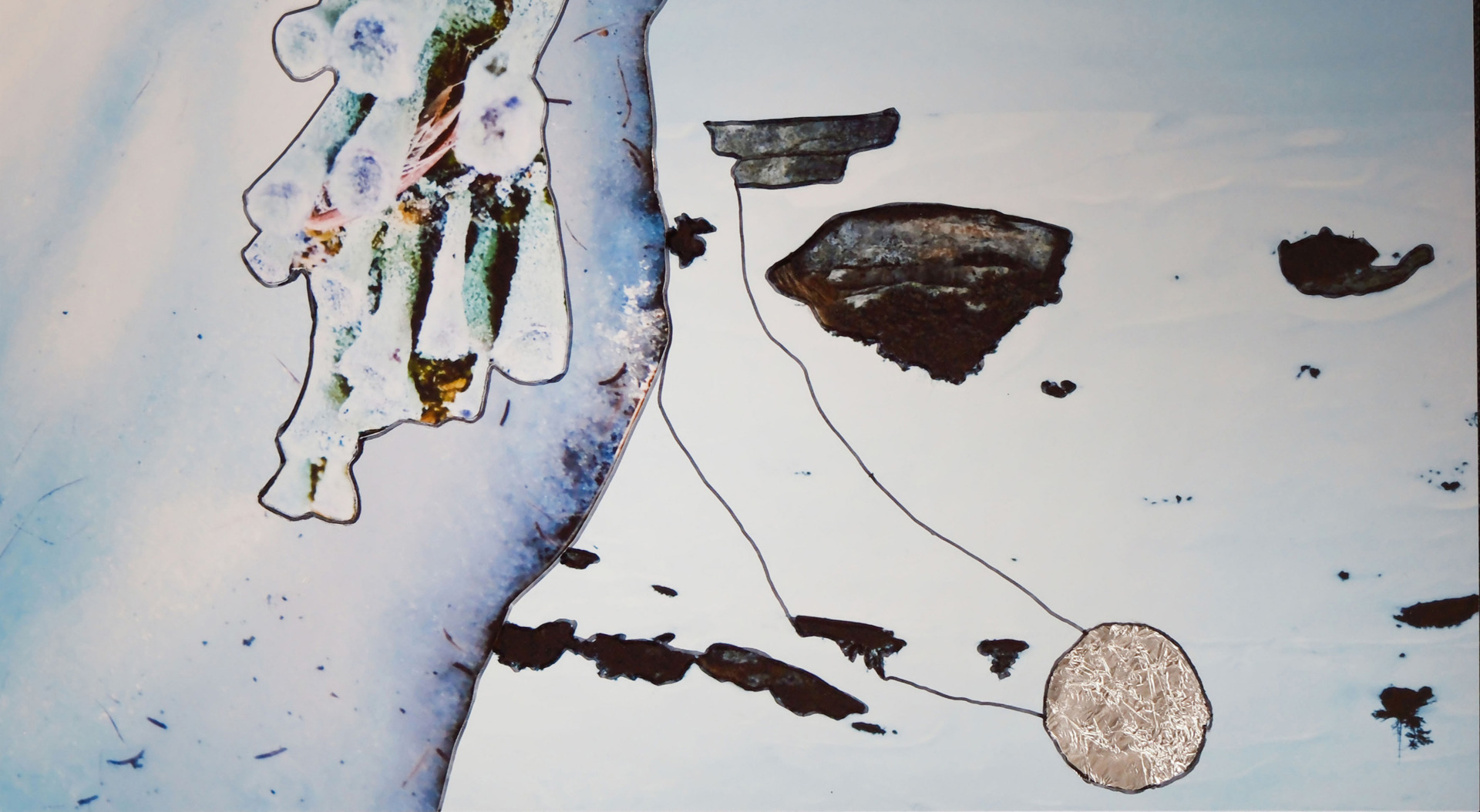 In de winter verhardt de grond als ijs; in de lente keert smeltwater terug via wortels en stengels, een echo van gletsjerritmes van ophoping en loslaten. Zaden dwalen, de gletsjer geeft vrij—beiden herschrijven ze de wereld via trage sedimentaties van verandering. Dit werk verbindt de gletsjers in de Alpen, het hoge Noorden en het land ertussenin, en weeft het intieme samen met het aardse, het hormonale met het ecologische, tot de grens tussen lichaam en landschap vervaagt.