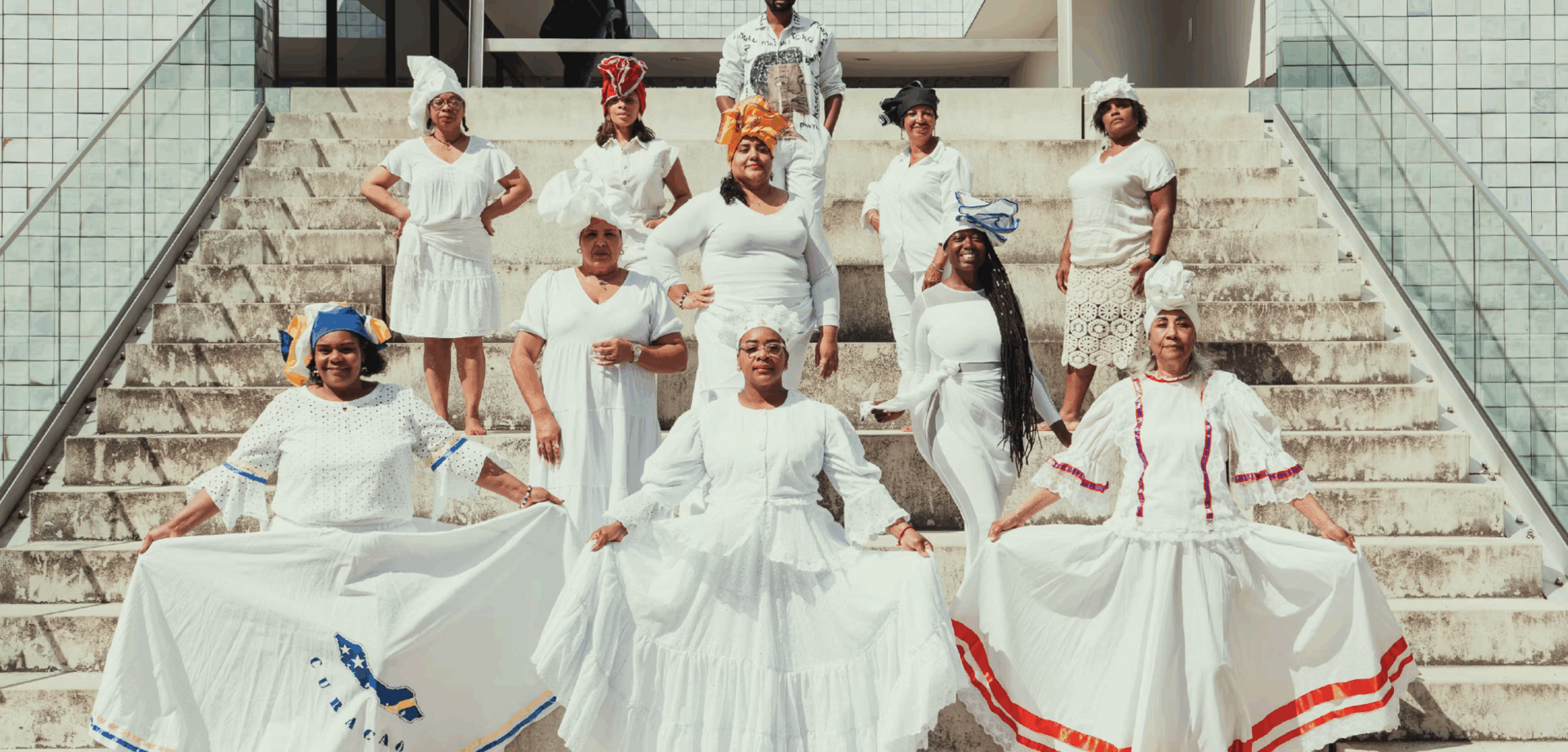 Mensen op Curaçao hechten veel waarde aan de tafel. Deze neemt, onder andere in verschillende traditionele vieringen, een centrale plaats in. Boven de tafel hangen portretten van een aantal deelnemers, in traditionele kleding en met traditoneel geknoopte hoofddoeken. Trots en waardig vertegenwoordigen zij zo de Curaçaose cultuur. Genaro Manuel maakte de portretfoto’s.