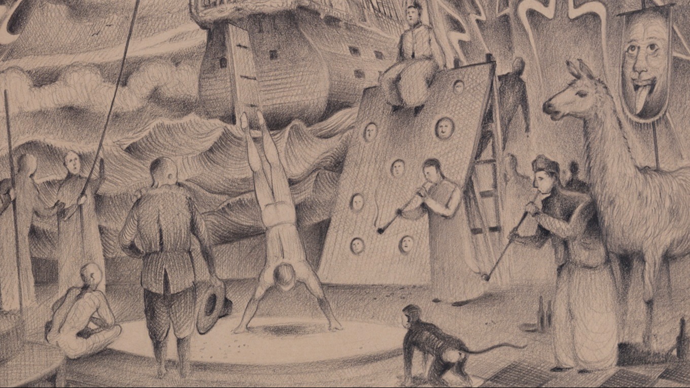 De wereld van Rens Krikhaar bestaat uit een archipel met vele eilanden. In een schemergebied zonder regels komen reuzen, processies, grijnzende maskers en hallucinante taferelen voor. Centraal in zijn werk staat de confrontatie met onze eigen nietigheid. In de wereld die hij oproept wil hij onze tragedie blootleggen: de oerkracht van de natuur die uiteindelijk altijd wint. Overgeleverd aan een dromerige en soms beangstigende wereld vol natuurgeweld en irreële elementen, schildert, tekent en schetst Krikhaar in dramatische licht-donkercontrasten een almaar groeiend ‘Terra Incognita’ waaraan de mens overgeleverd lijkt te zijn.