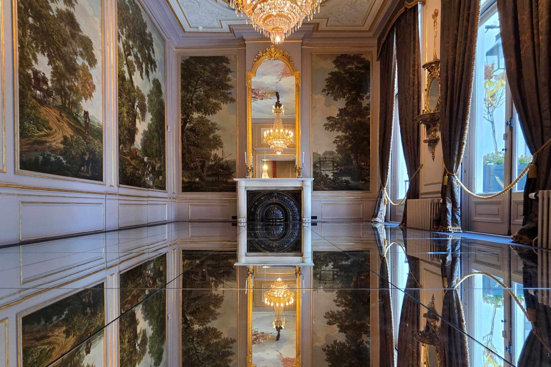 De spiegelvloer-installatie versterkt het samenspel van de schilderingen en zorgt voor een duizelingwekkende ervaring: muren, plafond en kunstwerken weerspiegelen eindeloos in elkaar. In de monumentale Andriessenkamer vloeien verleden en heden nu letterlijk in elkaar over. Vind jezelf midden in een ruimte die uitnodigt tot kijken, reflecteren en fotograferen.