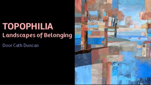 Cath Duncan onderzoekt in deze tentoonstelling hoe onze liefde voor een plek onze herinneringen, identiteiten en ons gevoel van verbondenheid vormt. De term topopholia beschrijft de emotionele band tussen mensen en de landschappen die zij bewonen. De term werd voor het eerst gebruikt door dichter W. H. Auden (1947) en later gepopulariseerd door geograaf Yi-Fu Tuan (1974).