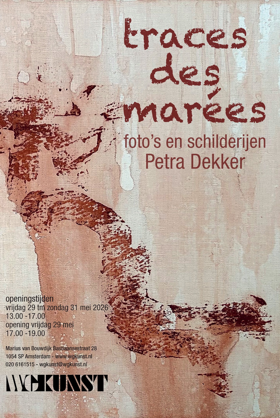 Het laatste weekend van mei exposeert beeldend kunstenaar Petra Dekker haar werk in WG Kunst, onder de titel Traces des marées.