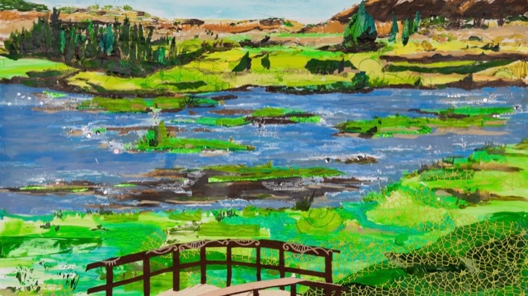 Petra Crielaard exposeert haar veelkleurige schilderijen in acrylverf.