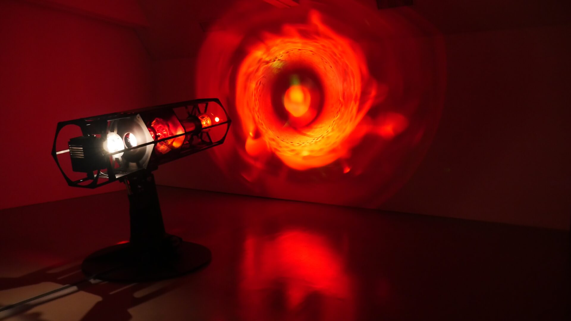 Beeld: Nicky Assmann, The Abysses of the Scorching Sun, 2018, revised 2024. Kinetic light sculpture. Courtesy of the artist.