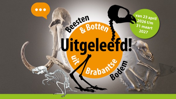 Uitgeleefd! Beesten & Botten uit Brabantse Bodem’. Met een expositie onder deze titel trakteert Museum Klok & Peel in Asten zijn bezoekers een jaar lang op de fascinerende wereld van dieren en hun skeletten. De expositie combineert eeuwenoud erfgoed op verrassende wijze met hedendaagse hightech en is daardoor interessant voor alle leeftijden. Je kunt er zelfs praten met de skeletten van een middeleeuws paard en een prehistorische mammoet! De tentoonstelling is te zien van 23 april 2026 tot 1 april 2027.