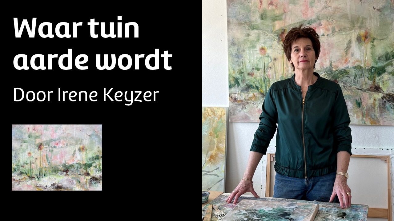 In het werk van Irene Keyzer verschuift het perspectief van de tuin naar de aarde. Intieme, florale motieven maken plaats voor landschappelijke beelden waarin oorsprong, materie en ritme voelbaar zijn. Haar schilderijen tonen geen letterlijke planten of landschappen, maar een verbeelde natuur, waarin tijd, ruimte en materie met elkaar verweven zijn.