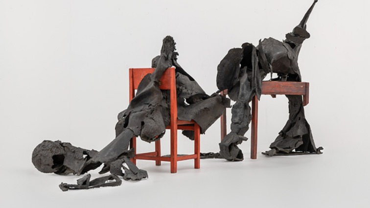 In een van de zalen van de Van de Veldevleugel staat een indrukwekkend werk van Wessel Couzijn uit de collectie centraal. Na de Tweede Wereldoorlog, die heeft aangetoond tot welk kwaad de mens in staat is, kiest Couzijn in zijn werk voor grote thema’s als dood, liefde, (wan)hoop, onderdrukking en vrijheid. Rendez-vous van tafel en stoel vormt een bewogen scène van verwoesting, die de hele tentoonstellingszaal opeist.