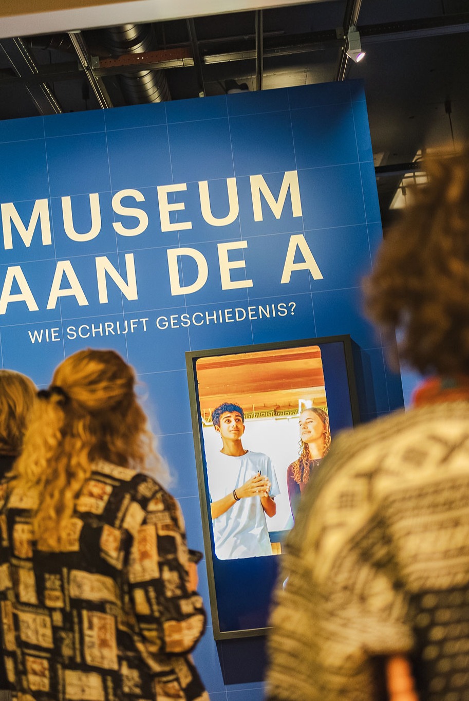 De tentoonstelling ‘Wie schrijft geschiedenis? Museum aan de A in het Groninger Museum’ laat zien wat er zoal bij het maken van een nieuw geschiedenismuseum komt kijken. Museum aan de A deelt eerlijk waar het tegenaan loopt bij het vertellen van geschiedenisverhalen over Groningen – en vraagt iedereen om daarover mee te denken. De tentoonstelling neemt je mee in de ontwikkeling van het toekomstige Museum aan de A in de Brugstraat in de stad Groningen. Het museum is nu nog gesloten in verband met een verbouwing, maar wordt een museum over de geschiedenis van Groningen en Groningers.