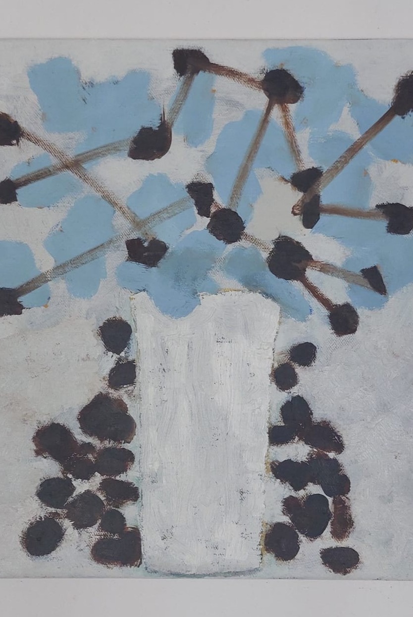 “Eigenlijk was schilderen altijd een zoektocht met de nodige ballast aan meningen en theorietjes waar je vanaf moet. En nog steeds is het een hoop gedoe. Hopend dat uit alle pogingen iets zal opdoemen dat beklijft. Terugkijkend is de variant ‘De woorden waaien laat weg’ aardig van toepassing op mijn ontwikkeling. Laat de woorden weg waaien!”